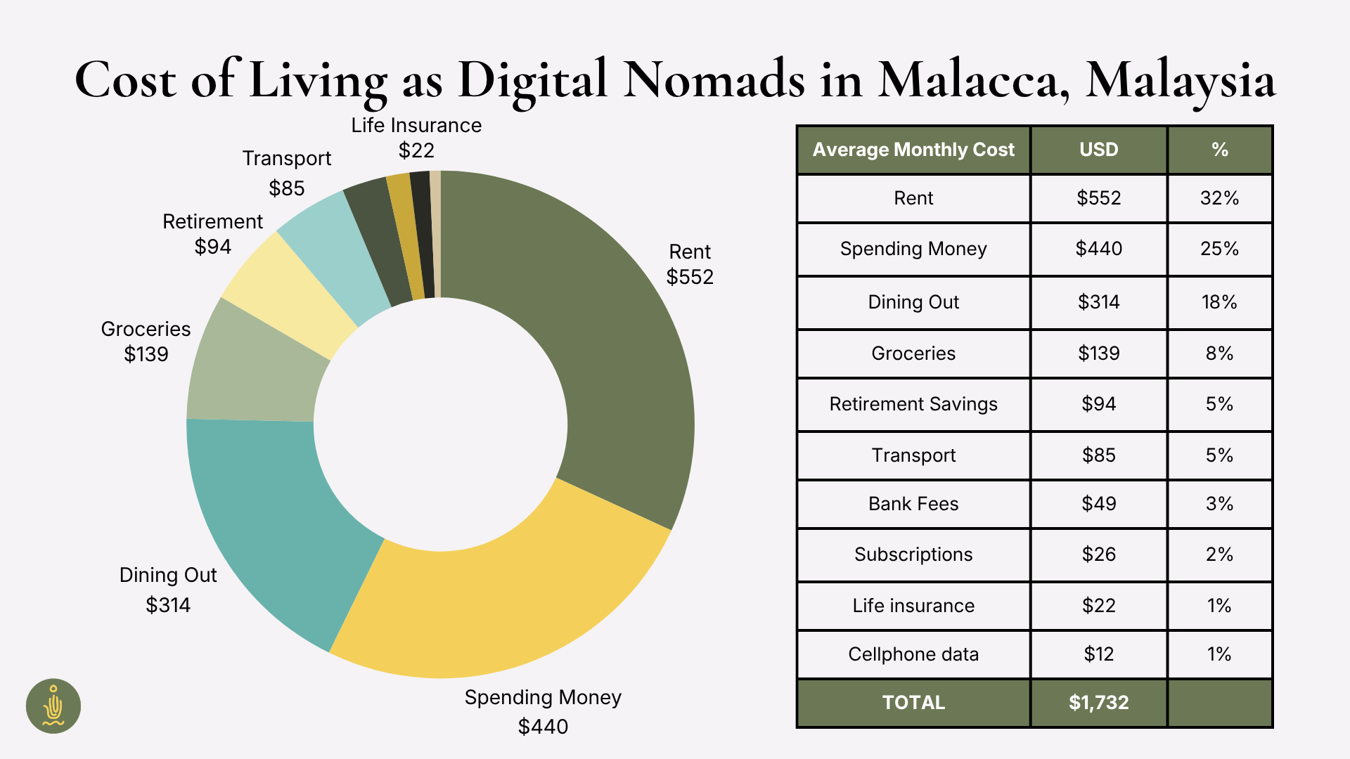 We also had no visa costs, as we got a 90-day tourist visa upon arrival in Malaysia. It’s part of the reason we love Malaysia so much—it makes staying here longer term so easy.