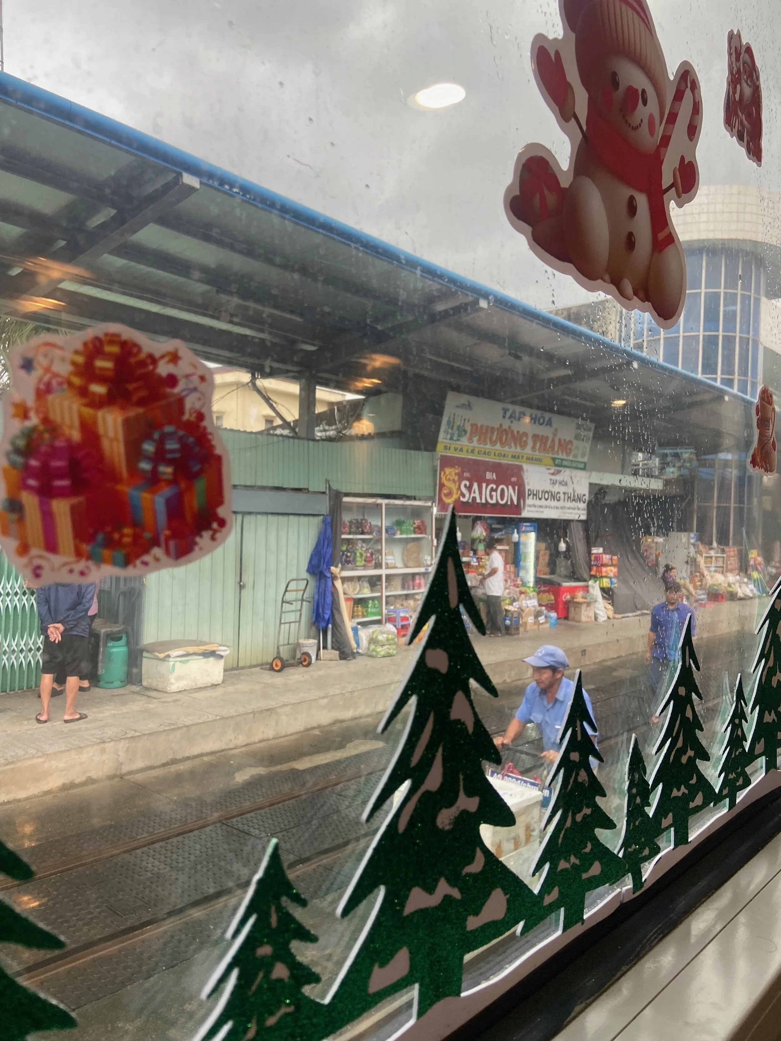 Because it’s mostly overnight, a lot of the trip is spent sleeping. We watched city lights slide past Ho Chi Minh City in the evening, then woke to lush, rain-fed countryside that looked intensely green.