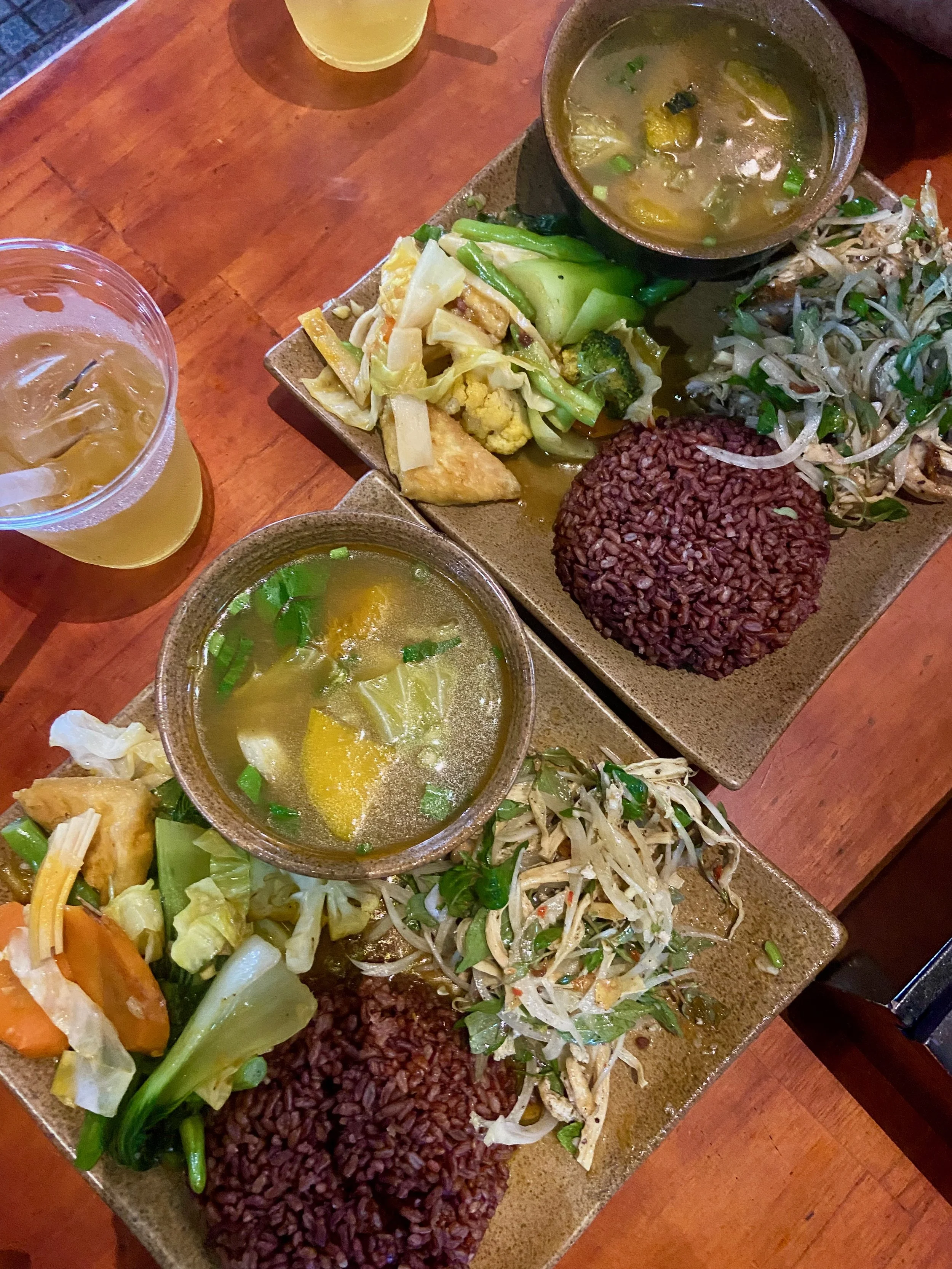 I ordered from them several times before finally visiting in person, and the food held up every single time. The dish to order is the Cơm Tứ Quý — a rice set with four accompanying plates: tofu skin salad packed with herbs, a light soup, and vegetables with tofu. Each component simple, each one done well. It's the kind of meal that reminds you that vegetarian food doesn't need to be complicated to be brilliant.