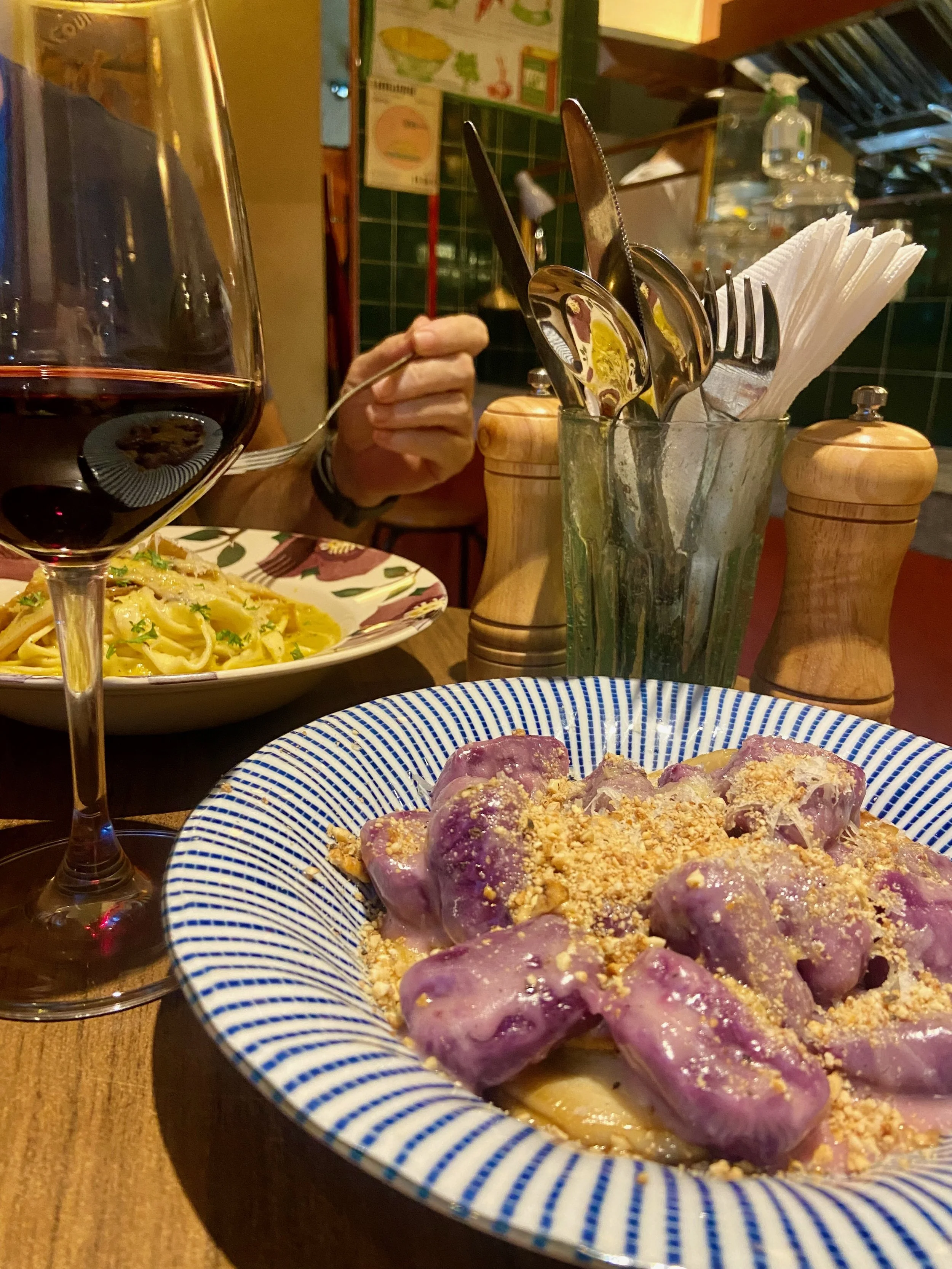 I ordered the Purple Gnocchi with a glass of house red. Fluffy, pillowy bundles of sweet gnocchi with generous slices of chewy mushroom, finished with a crispy topping that adds just the right bit of texture. It was exactly the kind of meal that makes you slow down and savour every bite.