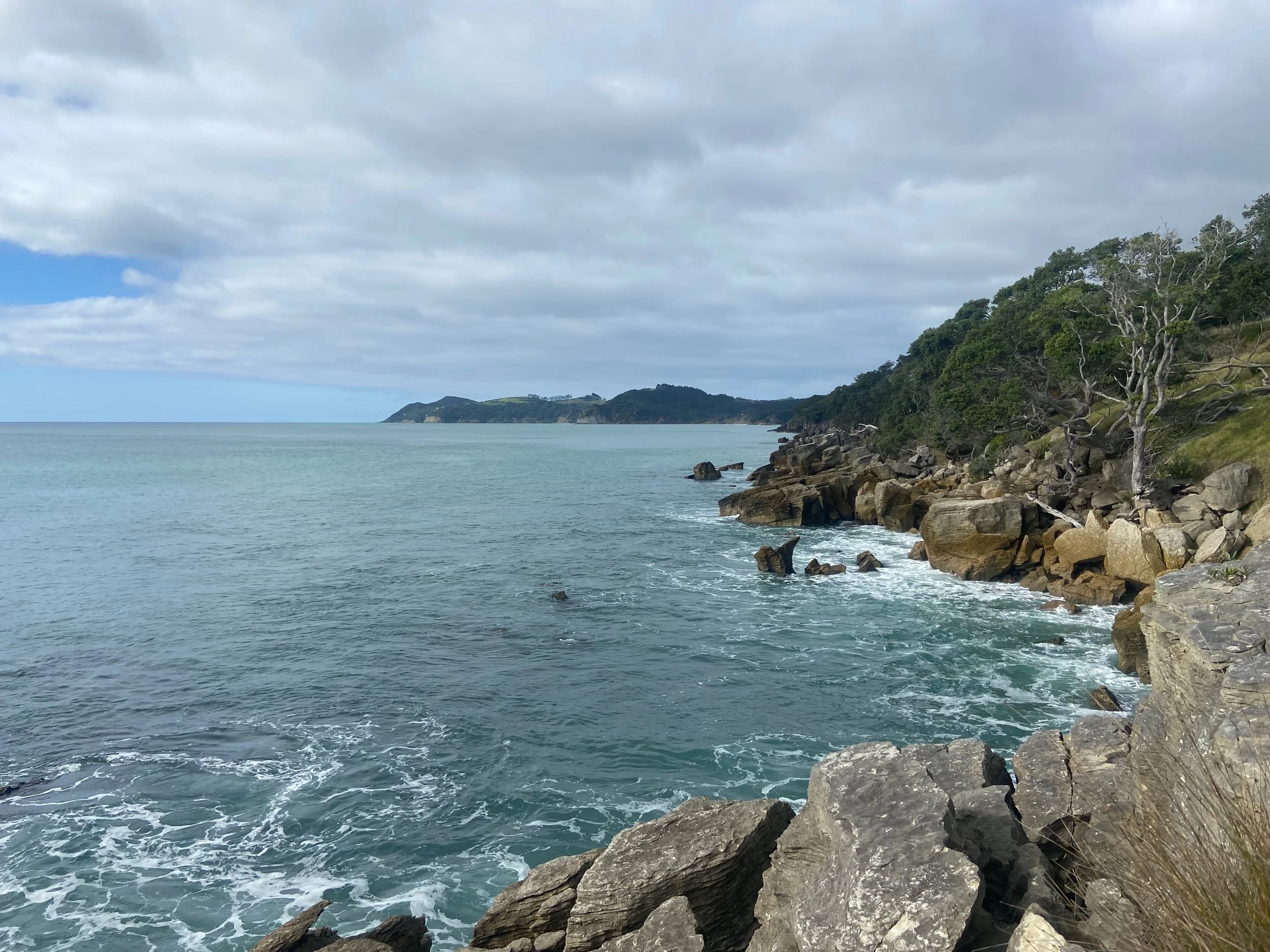 You’ll get plenty of chances to see beyond the trees and enjoy the panoramic views behind you to Bream Tail, out to the Hen and Chickens (Taranga and Marotiri Islands) and towards Whangarei Heads.