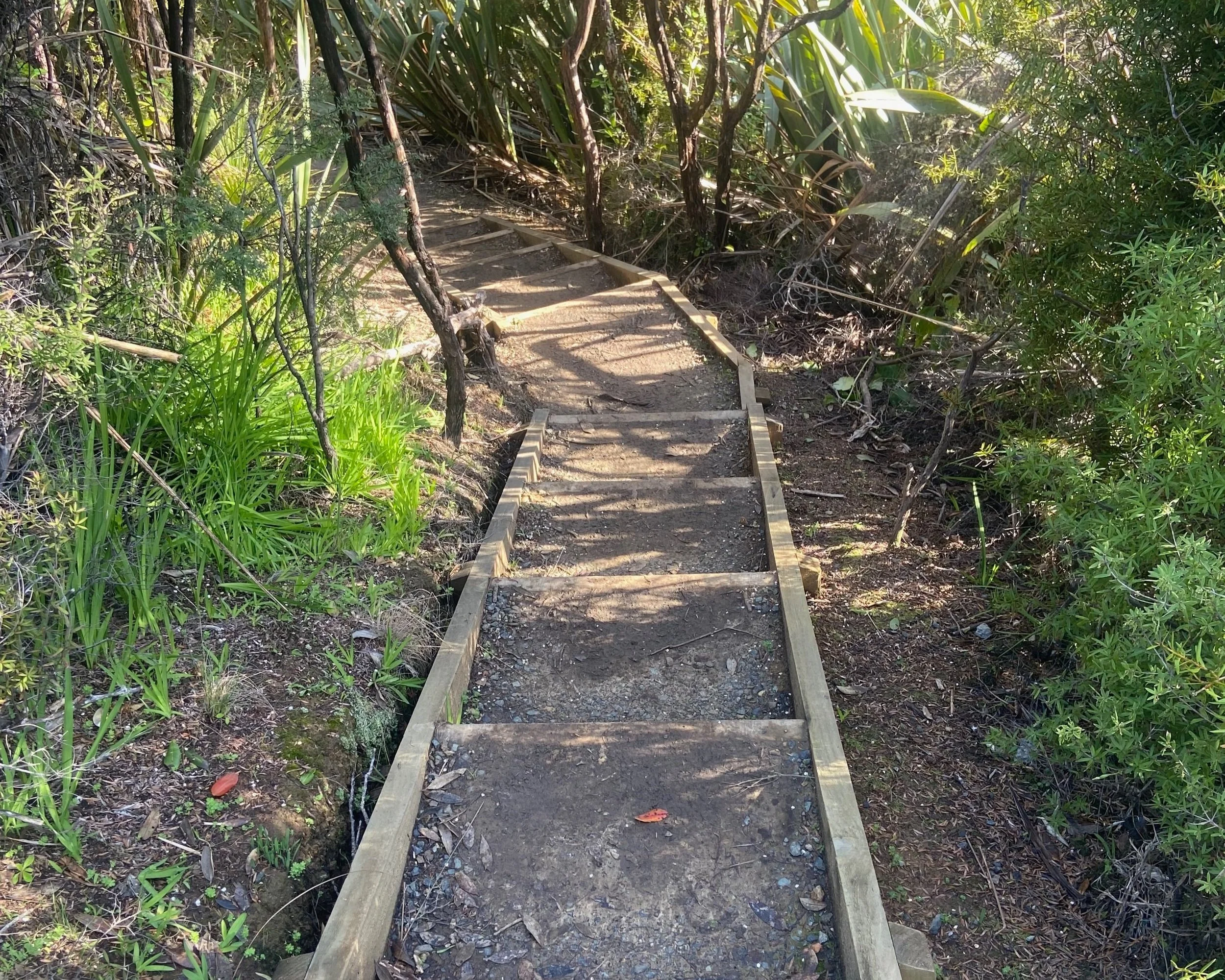 Peaceful forest section: The trail quickly dips into shady bush, with a real sense of calm. Watch for muddy spots, steps, and low-hanging pohutukawa branches.